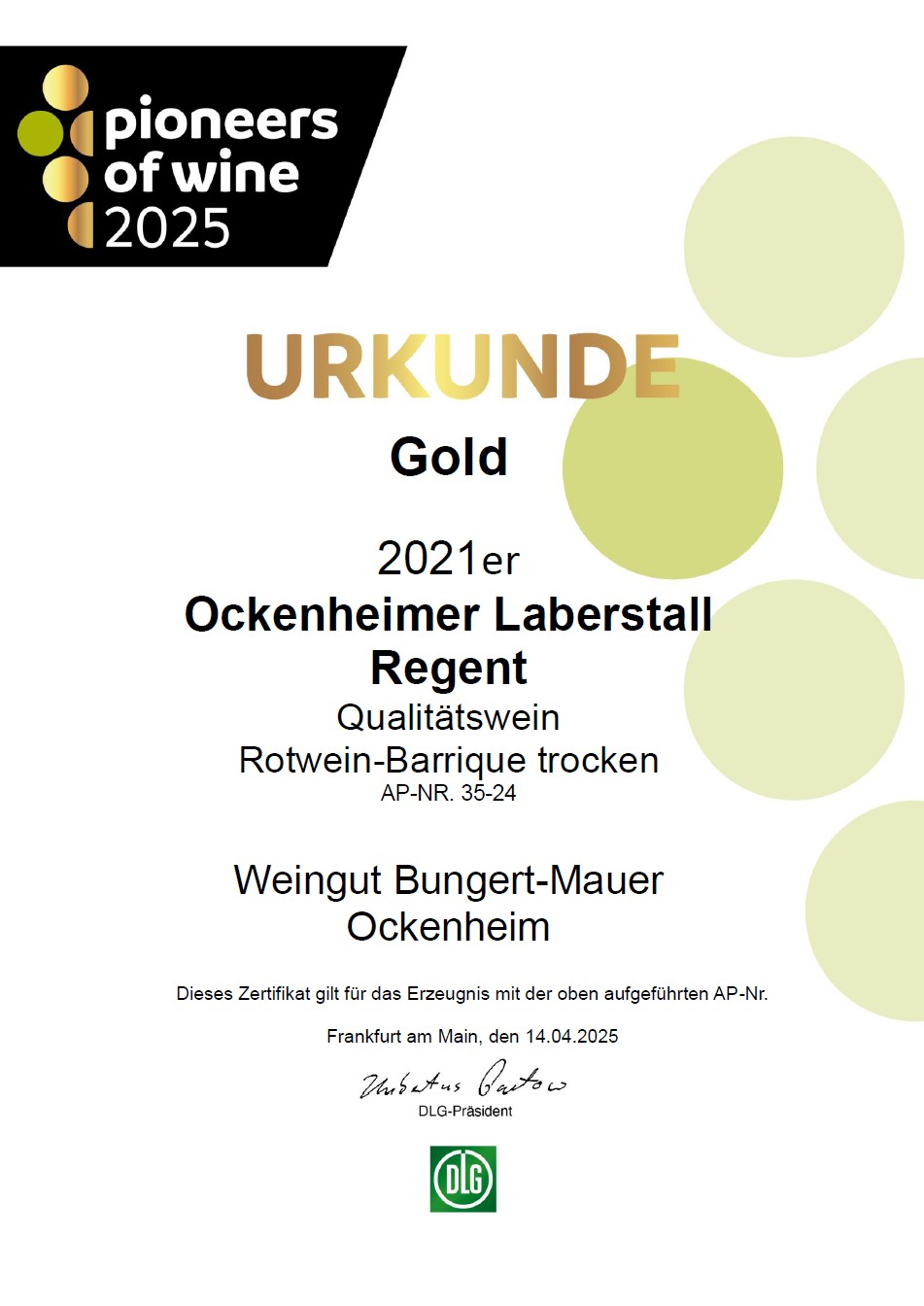 Unser Betrieb gehört bundesweit zu den “Top 100 - Die besten Weinerzeuger" (DLG).